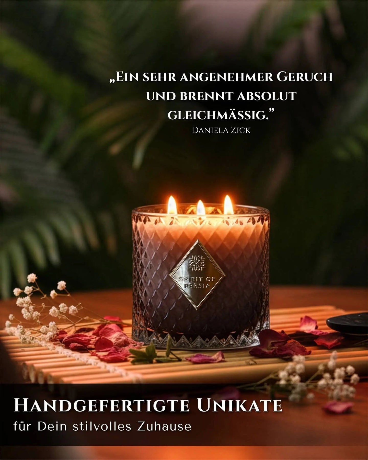 Lass die Kerze niemals unbeaufsichtigt brennen. Die Kerze darf nicht in die Hände von Kindern gelangen. Benutzung auf eigene Gefahr. Unbedingt von Zündquellen fernhalten.